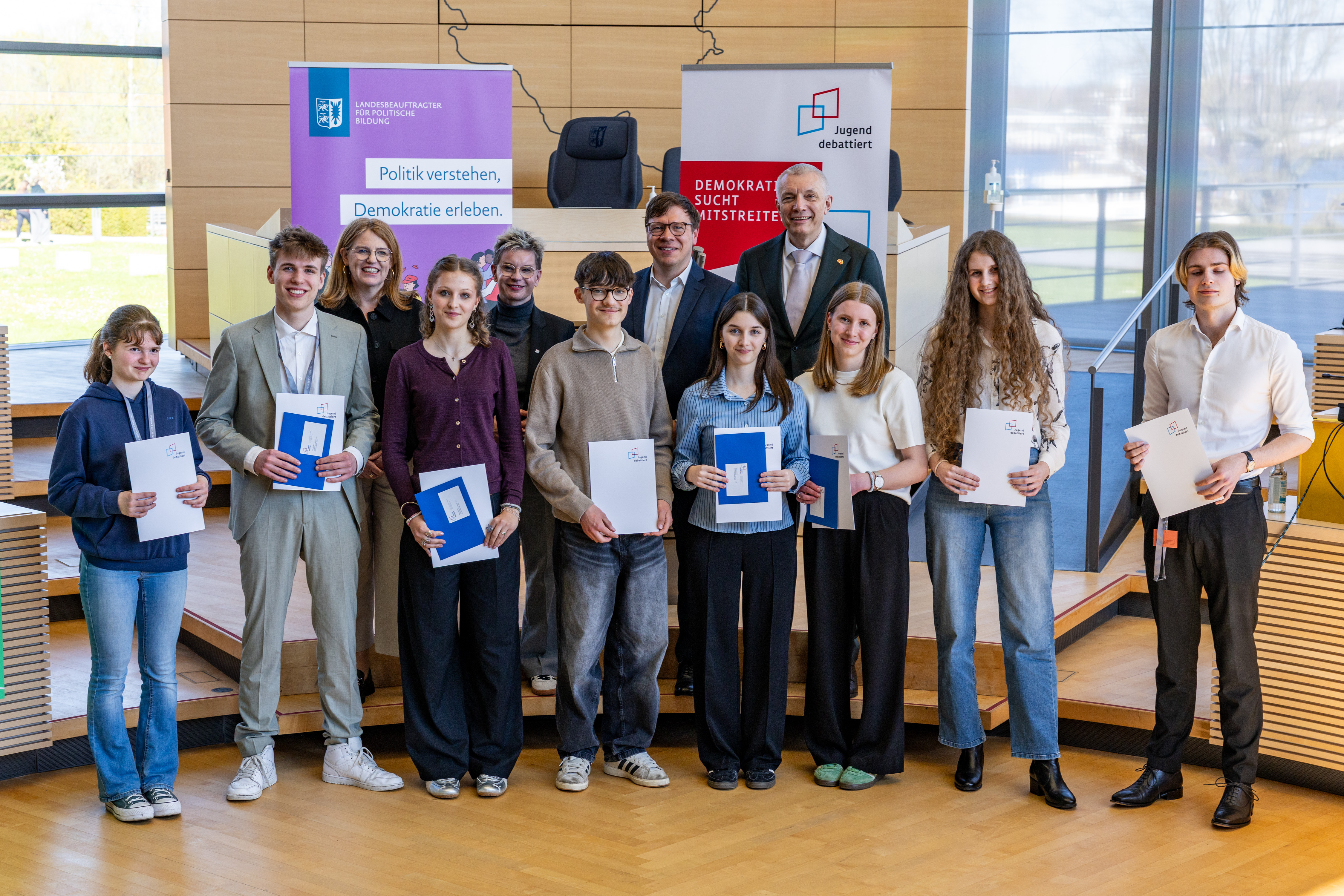 Das Landesfinale von Jugend debattiert in Schleswig-Holstein fand im Landeshaus statt. Sie finden nach dem Wettbewerb hier Bilder der Siegerinnen und Sieger des Landesfinales.